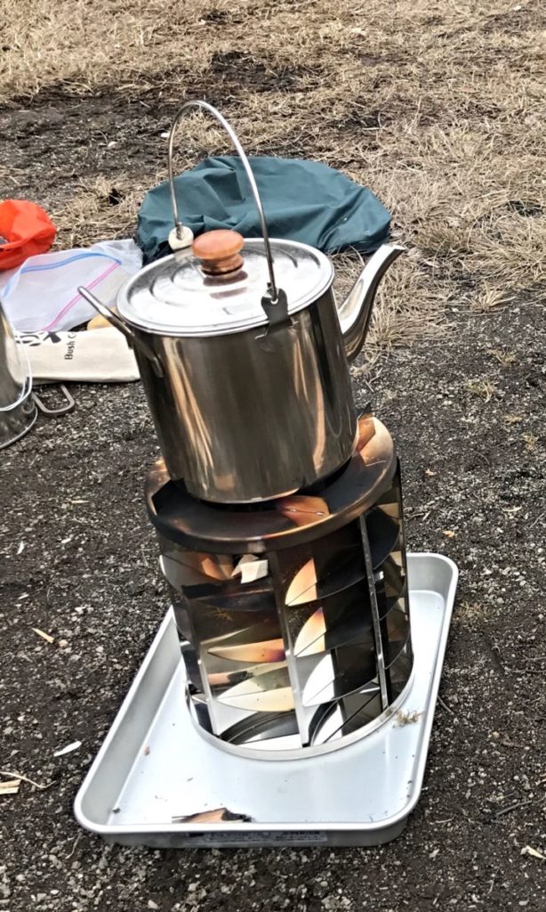 右がsamが最近仕入れた軽量ロッケットストーブEZY Stoveこちらも小さいですがロケットストーブですのでmattunさんの超高級七輪に負けず劣らずの燃焼効率です。