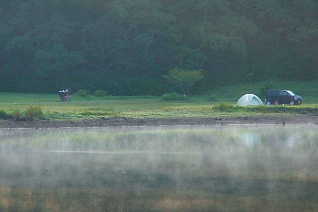 秋かな? 2017年9月9日 by sam | 0件のコメント 9月8日 昼間は下界にいました、かなりの残暑で汗ばみましたが夕方に上がって来たら既に寒いぐらいでした。最低気温が13°Cしかなく真夏の気温に慣れた体には寒かったですね。 朝方には湖面に寒暖差による蒸気霧が発生してました。秋のタンポポも咲き、空も秋の空です。志高湖はもう秋が始まってますよ!!