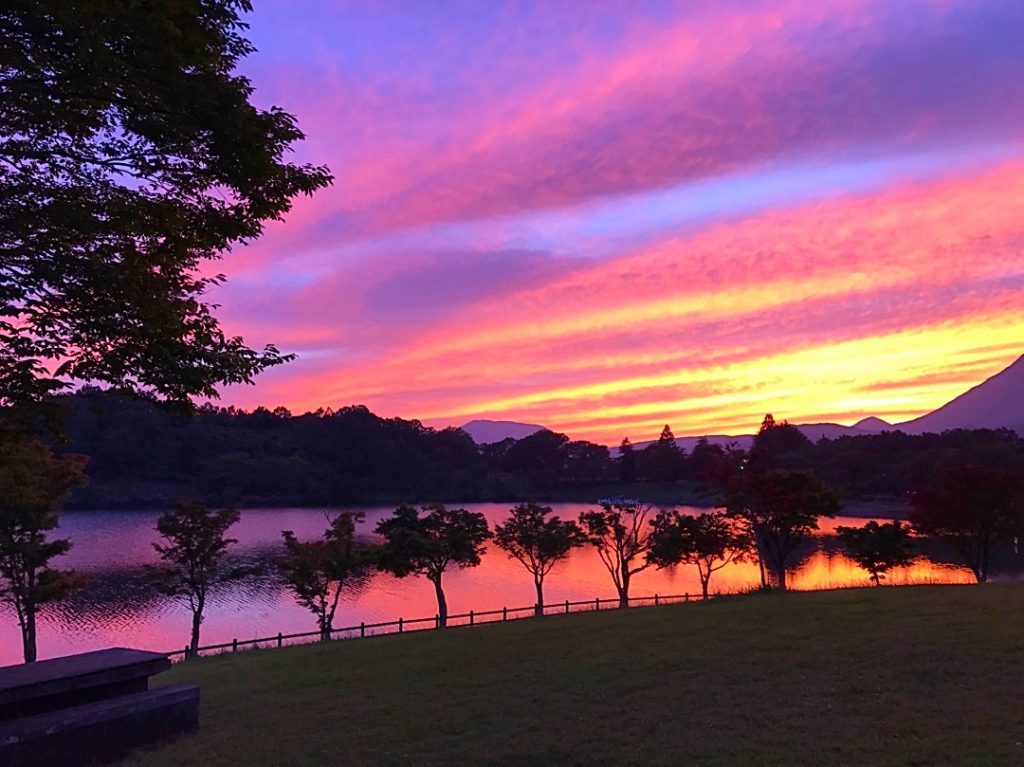 夕焼けに染まる志高湖 2017年9月13日 最終更新日時 : 2020年8月28日 sam 9月13日 平日ですが今日も結構キャンパーさんがいますね。あんまり夕焼けが綺麗だったのでついパチリ。これだけ染まるのは珍しいです。虹やオーロラの様で綺麗ですね。 この夕焼けは週末にやって来る台風の影響ですかね??週末の天気が心配です!!でも、秋の夕焼け鎌を研げという諺もあるので、明日は良い天気でしょうね。