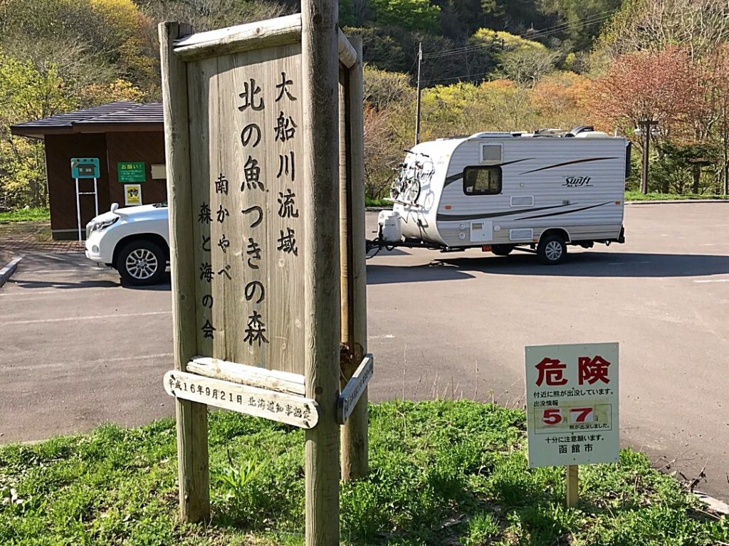 道の駅で、すぐ近くに無料のキャンプ場がありますよと教えて頂いたので、チェックしてきました。川のすぐ横にこじんまりと綺麗に整備された南茅部河川公園です。