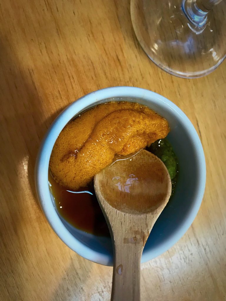 下山後、アポイ山荘でお風呂を浴びて生ビールとワインに、解禁に成ったばかりの生雲丹と日高産のつぶ貝で一杯、心地よい疲れに程よくお酒が回りますね!