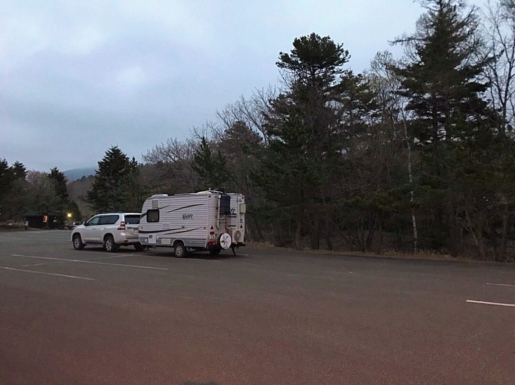 今日のお宿はビジターセンターに隣接したアポイ山麓ファミリーパークキャンプ場です。一泊600円+ゴミ袋代でした。