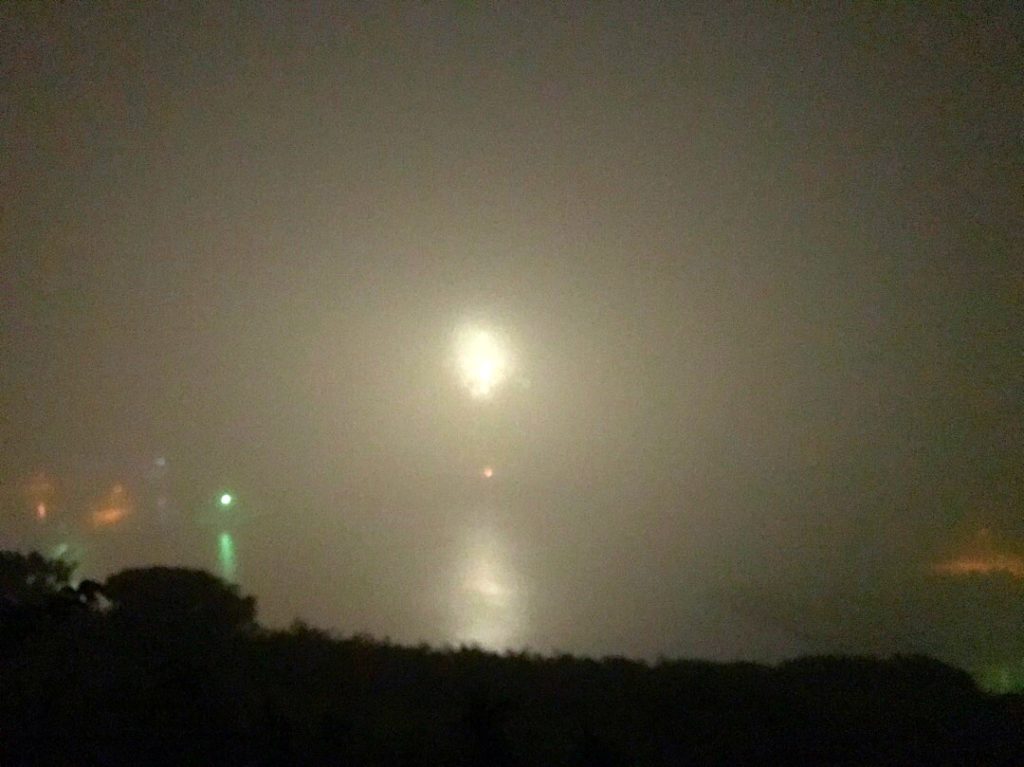 夜には花火が上がりました。濃い霧の中でのささやかな花火でした。音はすれども全体的に明るくなるだけで、良く見えないもどかしい花火でした。何処か寂しい感じの花火でしたが、夜空が一面真っ赤に染まったり初めての光景でした。北海道の小さな島での良い思い出に成りました。