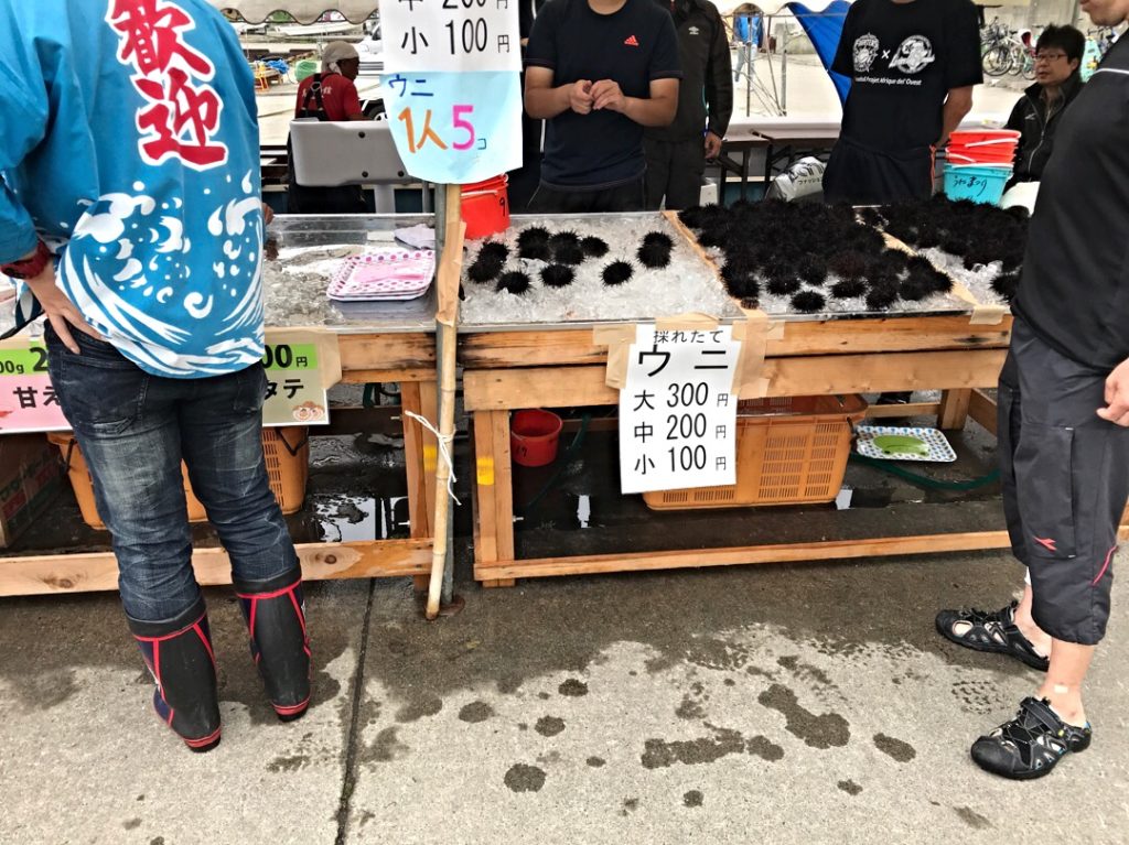 まだ11時ですがだいぶ賑わって来たようですので雲丹と帆立で生ビールと行きました(旨いな~)!