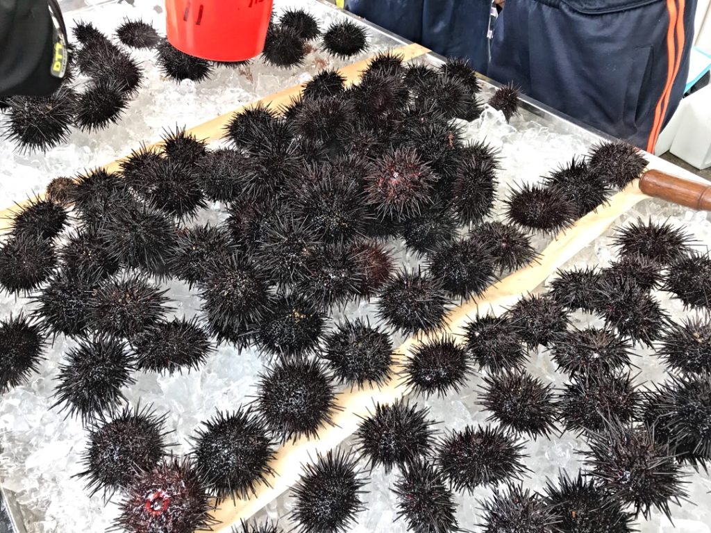 今日の肴は生ウニです。雲丹しかない島です(笑)。生ウニの中から雲丹を取り出すのはとても大変でした!
