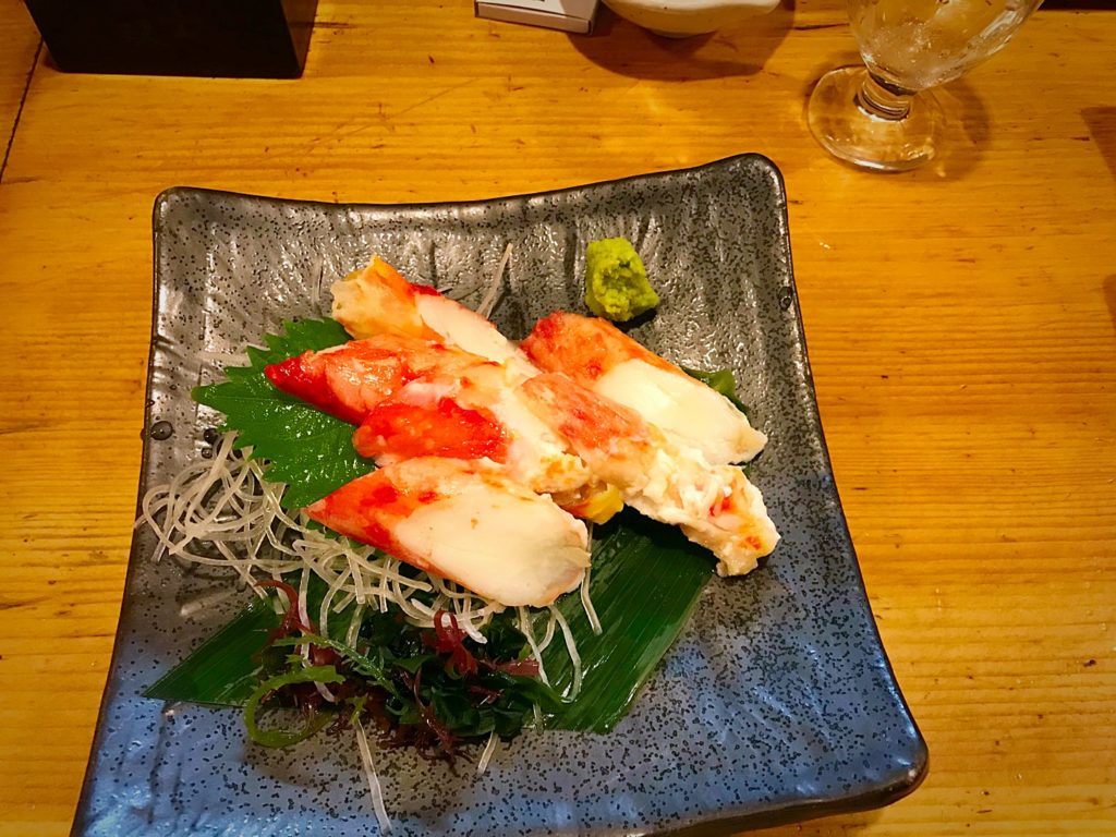 焼タラバ、生ガキ、ホッキ刺身、天恵の美酒“大信州”、特に旨かったのは”白菜こうじ漬+山わさび”、大満足でした!!