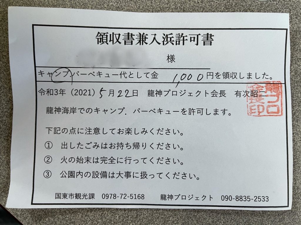 龍神海岸、集金のおじさんが来られたので1000円払いました。電話をしたら集金に来てくれるみたいです。