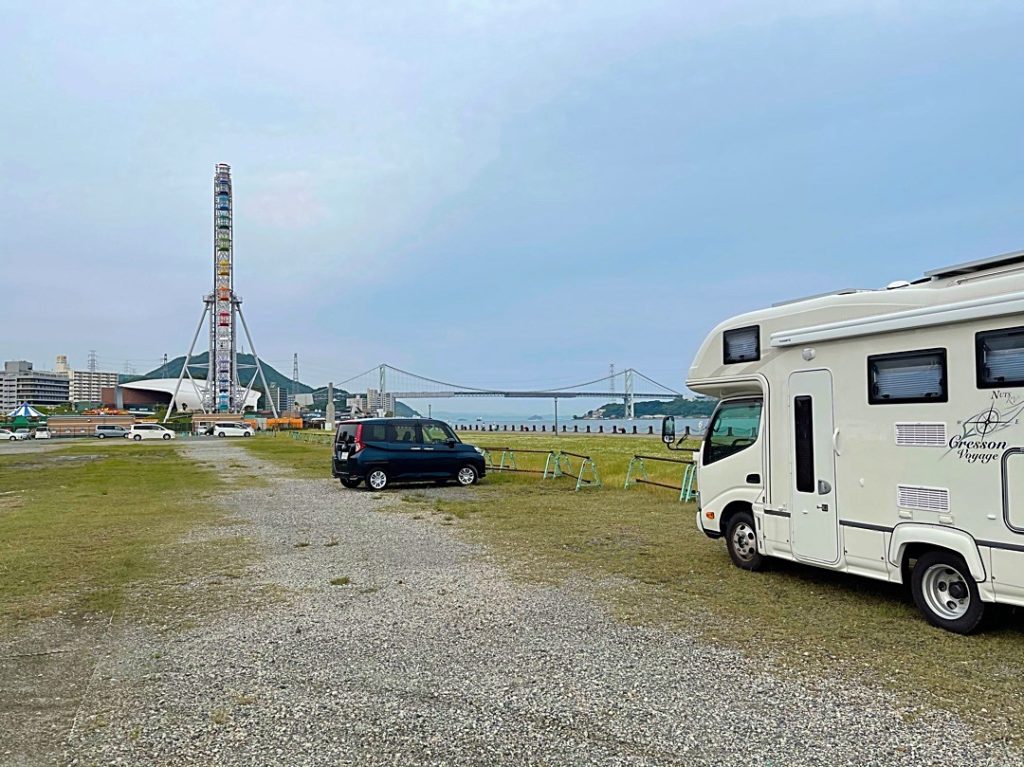 唐戸市場、あるかぽーと駐車場で車中泊 2021年6月23日 最終更新日時 : 2022年5月5日 sam 6月6日 山口辺りを巡るために下関で一泊しました。唐戸市場の奥の あるかぽーと駐車場 で泊りました。 関門海峡の真横で関門大橋も見える所で、唐戸市場までは歩いて行ける距離で、すぐ隣の遊園地?の前に綺麗なトイレも有りました。 街の中ですし、市場もすぐ傍で酒の肴には困りませんし、かなり広い駐車場で夜景も綺麗でとても良い所でしたね。 大分からだと本州に行くときには、ここで一泊していくと良い感じですね。 市場でふぐ刺し、フグ皮も仕入れましたよ!!