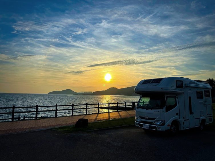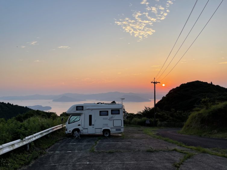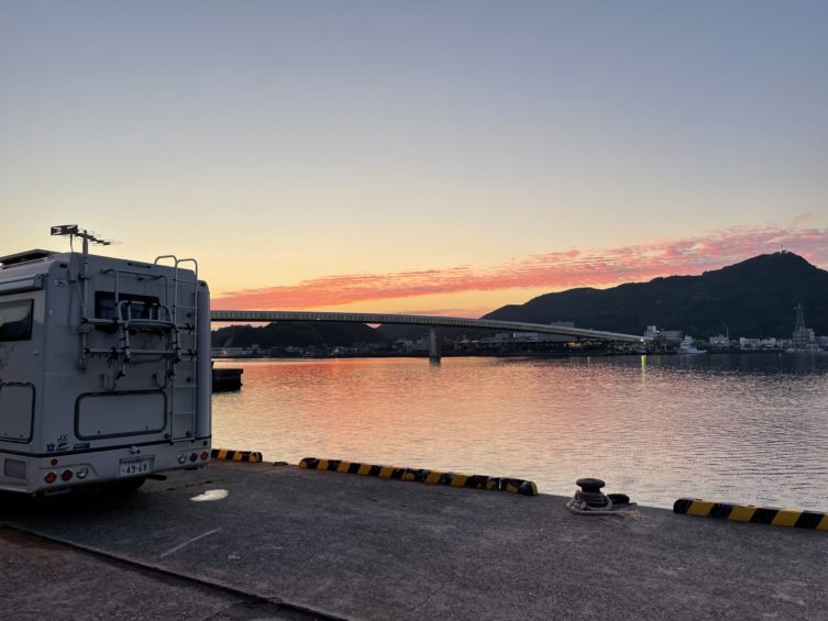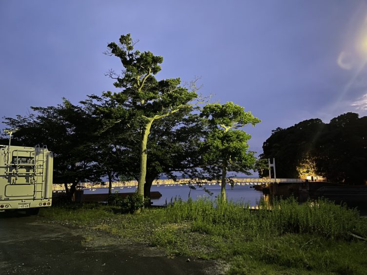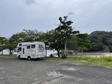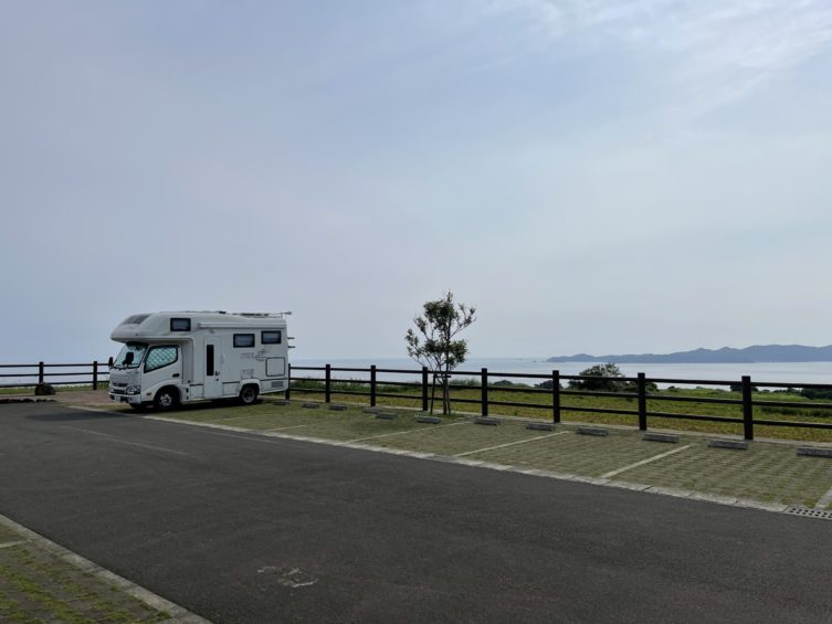 御立岬海水浴場の駐車場は車中泊はNGで、RVパークも道路際で他を探して海辺の県道を行ったのですが、途中で険道に成ってしまいUターンしました。2時間ぐらいロスったかな?