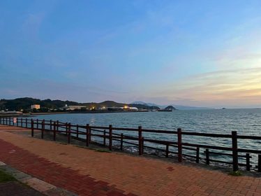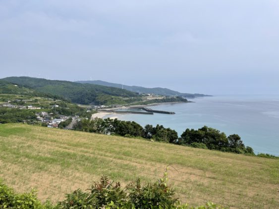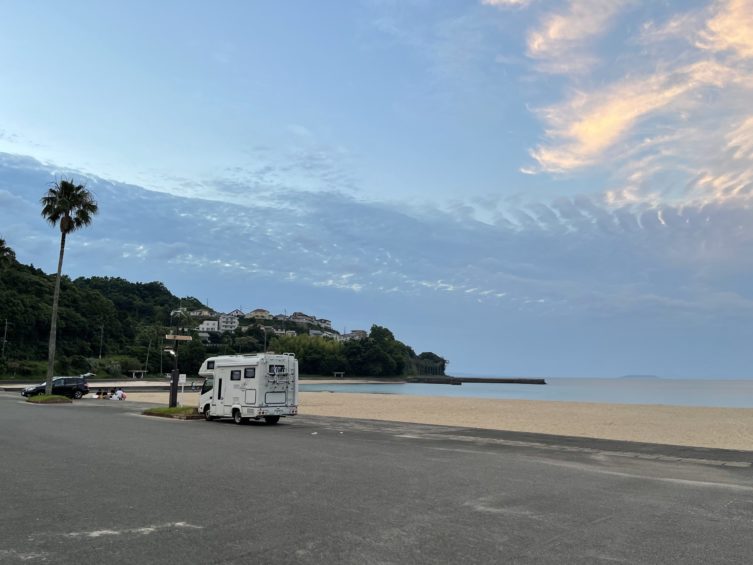 道の駅みなまた、広大なエコパークみなまた、中尾山展望台などをチェックし、小さな温泉街の海水浴場までやって来ました。