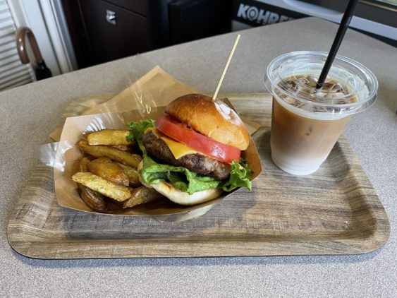 途中で立ち寄ったcafe&dining StopBy、海辺のお洒落なカフェでハンバーガーをテイクアウトして、海を眺めながら頂きました。