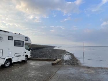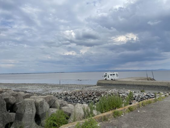 干潟よか公園(車中泊には良さそうな大きな駐車場にトイレも有りました)、海遊ふれあいパーク、道の駅しろいし等をチェックして、今日の肴を仕込んで、海辺にやって来ました。