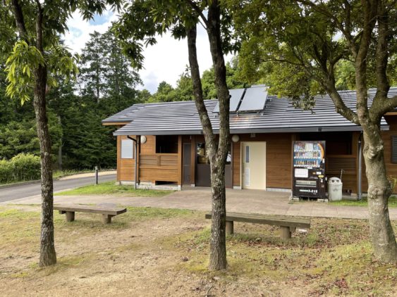 駐車場にトイレと湧き水は少し下がった所の修多羅水源の森に有りました。眺望が無く山の中感が有りますが、こちらでも泊まれそうですね。