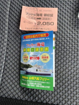 今までで一番小さいフェリー海竜(19トン)に乗って、長島まで渡って来ました。