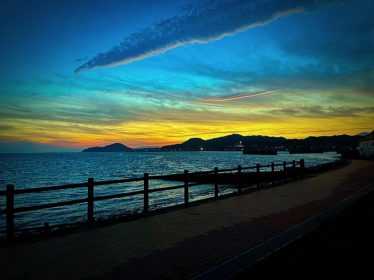 海岸のすぐ脇、トイレも有って、夕陽も見えて中々良い所でしたよ。