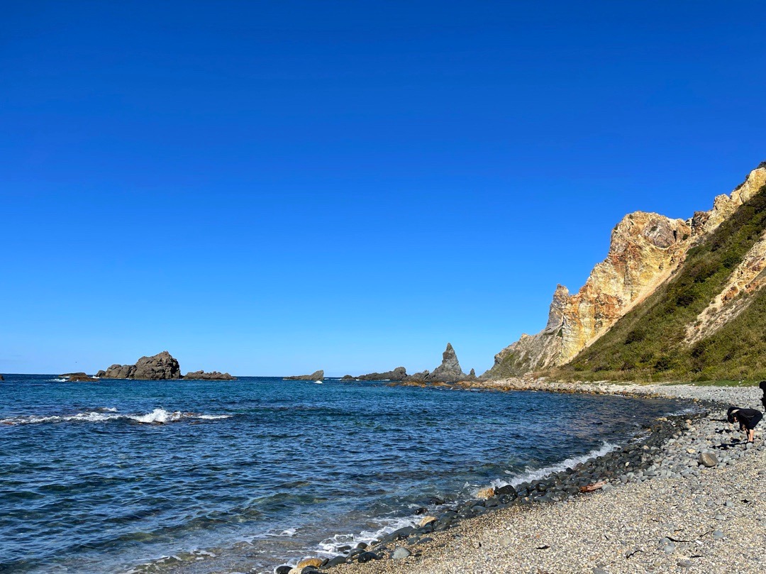 波打ち際で戯れるカップルの微笑ましい眺め、秋の海辺の涼しいそよ風、マンネリ化してる北海道旅ですが、来て良かったと思う瞬間です。