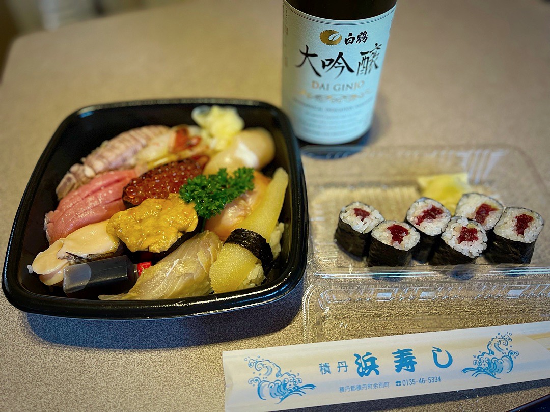 今日は結構歩いたし、温泉にも浸かりましたし、お寿司に大吟醸、夕陽に波の音に音楽、これ以上何がいるんでしょうか?北海道最高!!