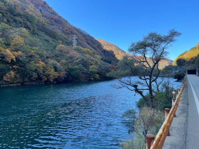 41号線沿いの神通川のダムです。面白い形のダムですね。