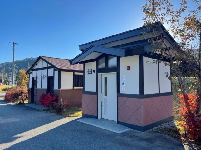 飛騨市の宮川沿いの千代の松原公園、トイレは有りますが、車中泊するには駐車場が民家のすぐ横で狭すぎて、難しそうでした。