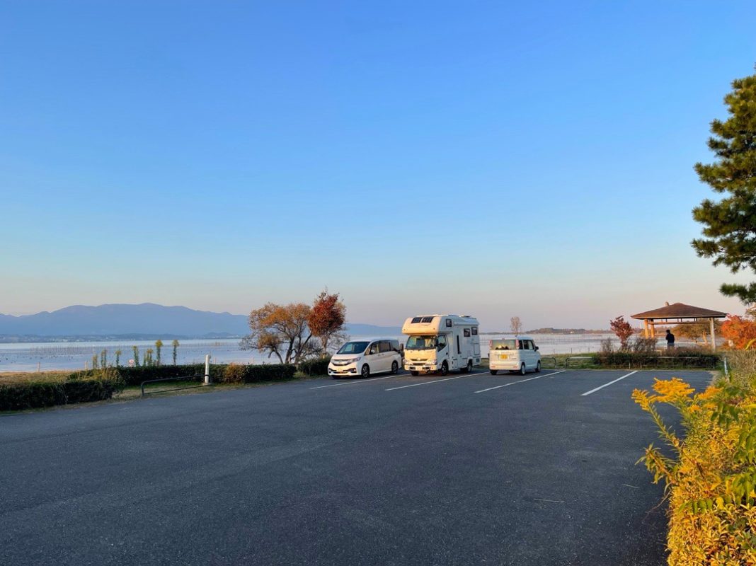 北海道キャンピングカー旅2022-秋-52 2022年11月9日 by sam | 0件のコメント 11月9日 滋賀県草津市 琵琶湖湖畔・志那1中駐車場 最低気温4.1℃、外に出ればそれなりに寒いが、車中はヒーターでほっかほか、天気は良さそう。 美濃橋近くの河原、オートキャンプの車とテントがあちらこちらに。 キャンプ場ではないが皆さんキャンプを楽しんでますね。トイレに道の駅も近くに有る見たいです? 此処で少し川側に入りすぎてスタックしてしまいました。近くにいた方たちが押していただき、無事に脱出出来ました(有難うございます)。 この車は後ろが重いので、直ぐにスタックしてしまいます(涙)。 遠くの高台に見えるのは岐阜城かな? 次回は岐阜も泊まって見たいですね。 道の駅 伊吹の里、ミルクファーム伊吹、伊吹山の麓で一休みして、昼ご飯をキャンカーで食べる。 アイスクリームを買い、秋の山野草展を覗いて、長浜の方へ旅立つ。 長浜南浜駐車場、駐車場もそんなに広くないし、キャンプをする雰囲気ではないですね。 琵琶湖の西岸の「さざなみ街道」を南にドライブしていくと、湖岸の園地でキャンプをしてる人はあっちこっちにいましたね。 湖岸のドライブ 道の駅 近江母の郷、おやつにお蕎麦を食べようと思ってましたが、すでに閉店でした。 奥の駐車場は車中泊に良さそうでしたが、車中泊も無断駐車も罰金1万円??? 今日のお宿は琵琶湖湖畔の「志那1 中駐車場」です。 この辺りはキャンプやBBQが出来る園地が沢山ありますね。 近くの道の駅よりは、夕映えの湖畔で、キャンパーさん達を見ながらの車中泊の方が気持ち良いですね。 「ありがとうございます」の杭の表示も気持ち良いですね。 ただ、トイレは有りますが、飲み水は有りません。 夕方の5時前、西の空に複数の火球?が浮いてます??、調べたらオレンジ色に輝く飛行機雲らしいです? 初めて見ました。 旅もぼちぼち終わりそうです。今日も夕暮れの湖畔で飲んだくれです。