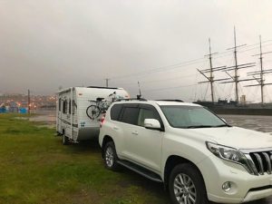 北海道キャラバン2018 7 江差町 カモメ島の駐車場